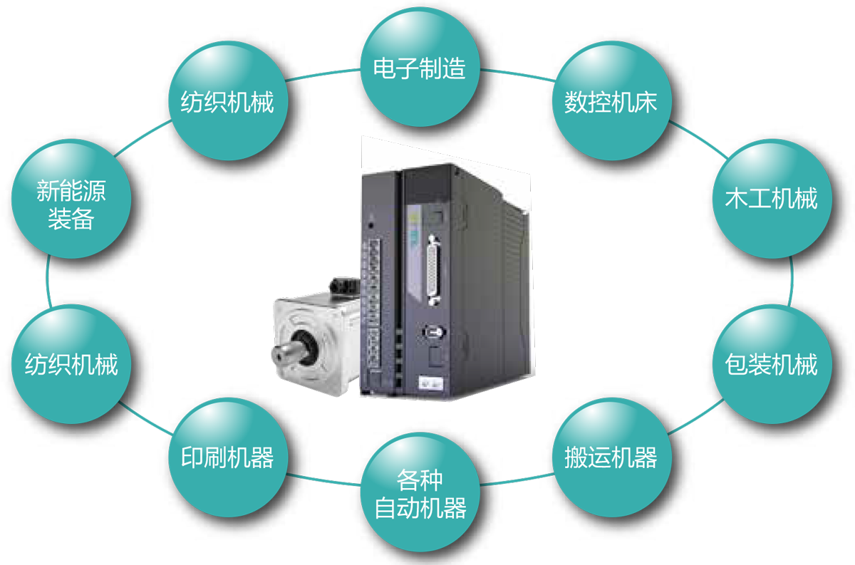 敏力智能伺服驱动产品系列已经广泛应用于数控机床、木工雕刻、食品加工、包装印刷、纺织印染、医疗器械、材料输送、军工装备、机器人系统等广泛领域。
